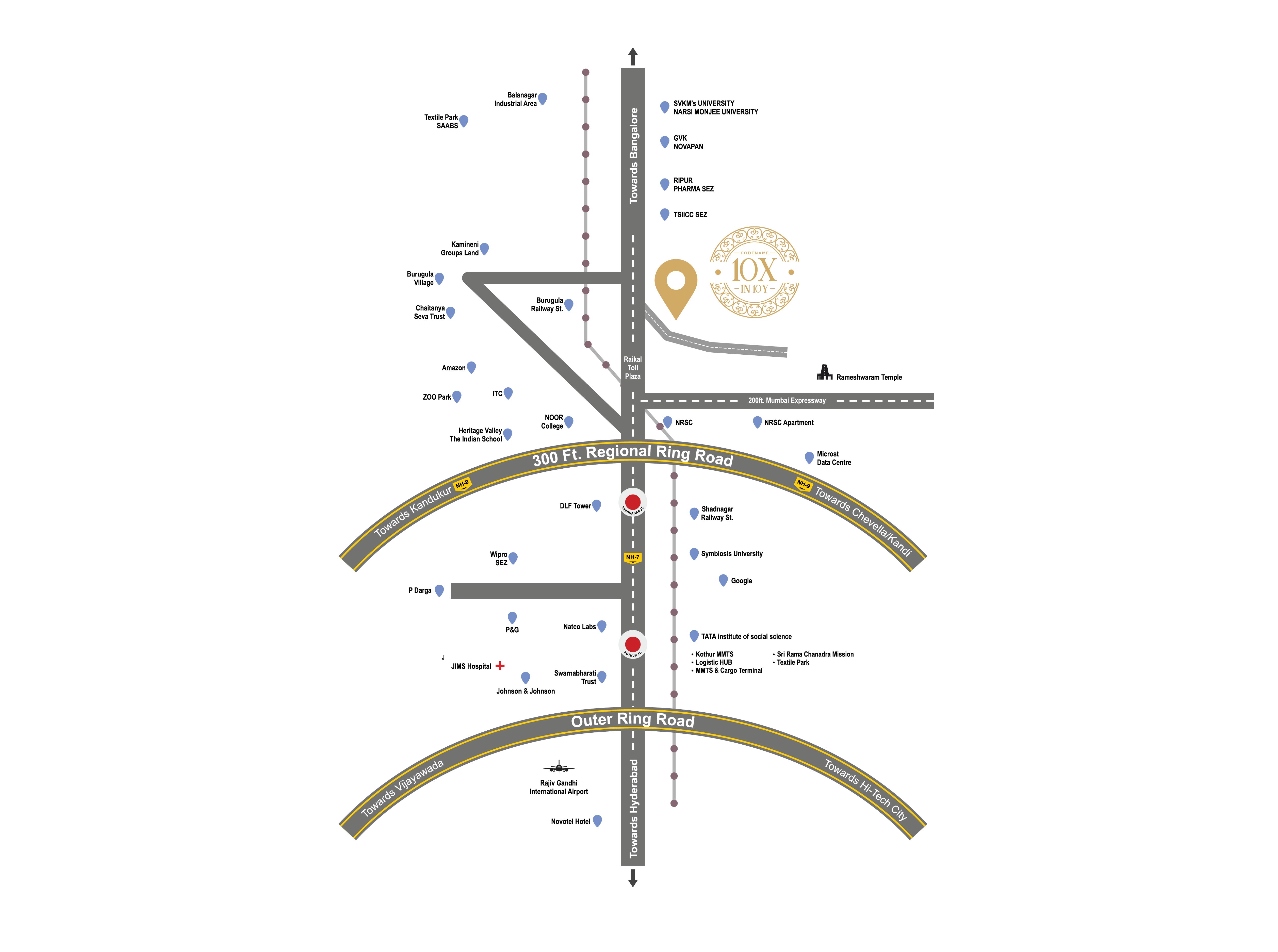 Introducing Codename 10X in 10Y, a premier villa plot community spanning 34 acres in Shadnagar, Hyderabad. This development offers 322 premium plots ranging from 250 to 400 square yards, designed for those seeking a harmonious blend of luxury and nature.